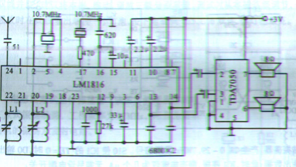 | 选择分类:当前分类——当前分类 相关联或者相类似的文章: EZ编程器自制问答(306) 蝙蝠牌电蚊拍故障检修(304) 请教这个残局有解么(303) 改进TOP222P开关电源模块 (300) 自制无源RS232-485转换器 (300) 500型多用表的小改进(299) 用单片机AT89C2051控制的充电器(296) 短信运行商诈骗黑幕! (293) PF-4型电子恒温仪电路及维修(292) 红外感应开关套件(291) 一装响收音机(采用TA7642)(290) 无线鼠标原理 (290) 一款玩具电子琴(289) 电视方格信号发生器(早已经断货)(280) PLC和单片机一体工控板(280) 光耦CRT的简易测试(277) 自制2.1声道多媒体音响系统(262) 湿度传感器的发展趋势(250) ST Flash的管脚定义 (250) 小调频发射器电路 回复 (246) 首页 前页 后页 尾页 本站推荐: | LA1816的应用 LA1816是目前较新型的单片立体声收音电路,它为24脚双列直插封装和双列扁评封装,其电参数一致。它内含AM/FM朝外差接收功能和立体声解码功能,只需少量的外围元件和外接功放即可收听调频立体声节目。下图是LA1816的原理图 B1是AM磁性天线,B2为AM振荡线圈。L2、L3分别为FM高放和振荡线圈,转换K可AM/FM选听的节目,当收听立体声节目时,第9脚为低电平,LED发光指示,调节12脚可变电阻可使左右声道达到平衡。从天线接收到的电台信号经过IC内的高放变频中放检波立体解码处理后,从13、14脚输出立体声音频信号,外接音频功放即可收听。 本IC的电压为1。8--6V,3V时AM静态电流为3MA,FM为8MA,接收灵敏度分别为AM/1MV/M和FM/20UV/M,由于它的灵敏度和选择性都比较好,所以使用小天线即可正常收听。