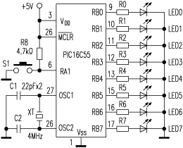 笔者将以附图的PIC16C55脉冲计数试验电路(计数时,RA1口为十进制码输入,RB口为二进制码输出)的源程序PIC count.ASM为例,介绍在MPLAB集成开发环境下编辑(建立)PIC单片机源程序的方法。其操作步骤如下。